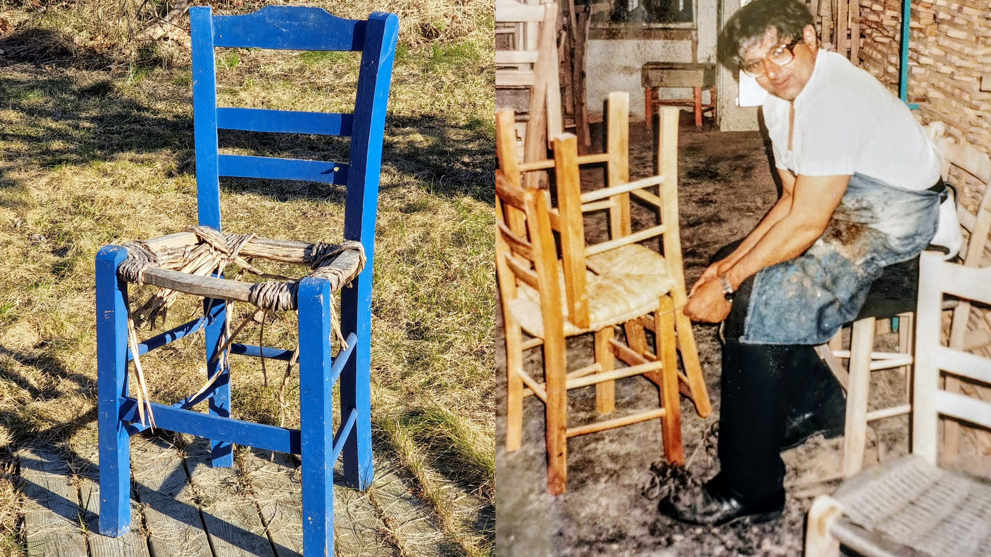 Efter lunchen fanns tid kvar innan bussen gick tillbaka till Platanias. De strosade planlöst genom en sliten del av staden när de fick syn på en liten verkstad. Därinne var det fullt av klassiska grekiska trästolar med rottingsits. På en av stolarna satt en man med ett skitigt förkläde och slipade på en annan stol.
