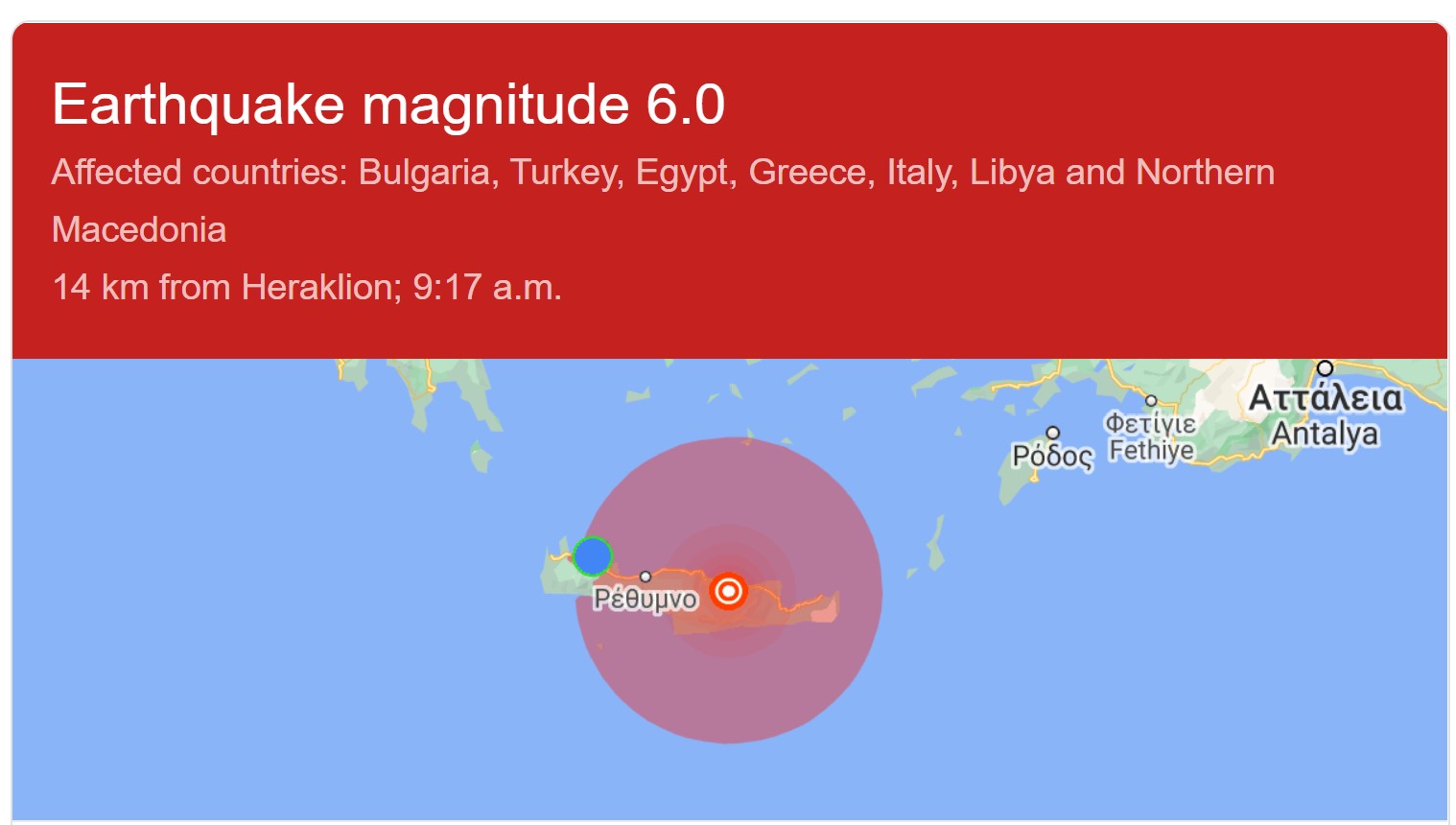 Invånarna i Greklands femte största stad Heraklion gav sig ut på gatorna när de vaknade av måndagens, som kändes över hela Kreta och närliggande öar. Även jag, som befinner mig i Chania långt från epicentrum, kände skalvet, men förstod inte vad det var frågan om förrän min jordbävningsapp larmade strax efteråt.
