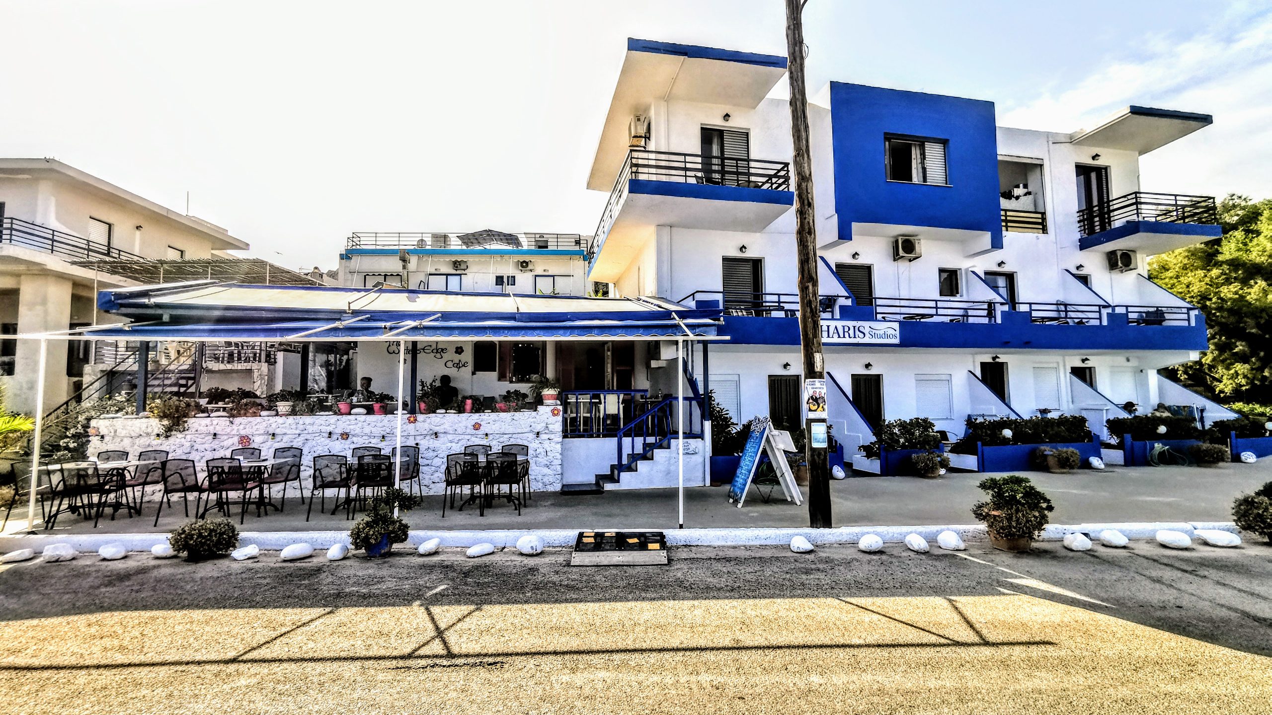 Vi bodde på Haris Studios, ett av de få hotell som hade öppet året runt. Det var utmärkt, när vi väl hade lärt oss att värma upp rummet med luftkonditioneringen. Vi satt ofta på deras lilla café och hängde med fiskargubbarna, som en gång hade varit Haris arbetskamrater.