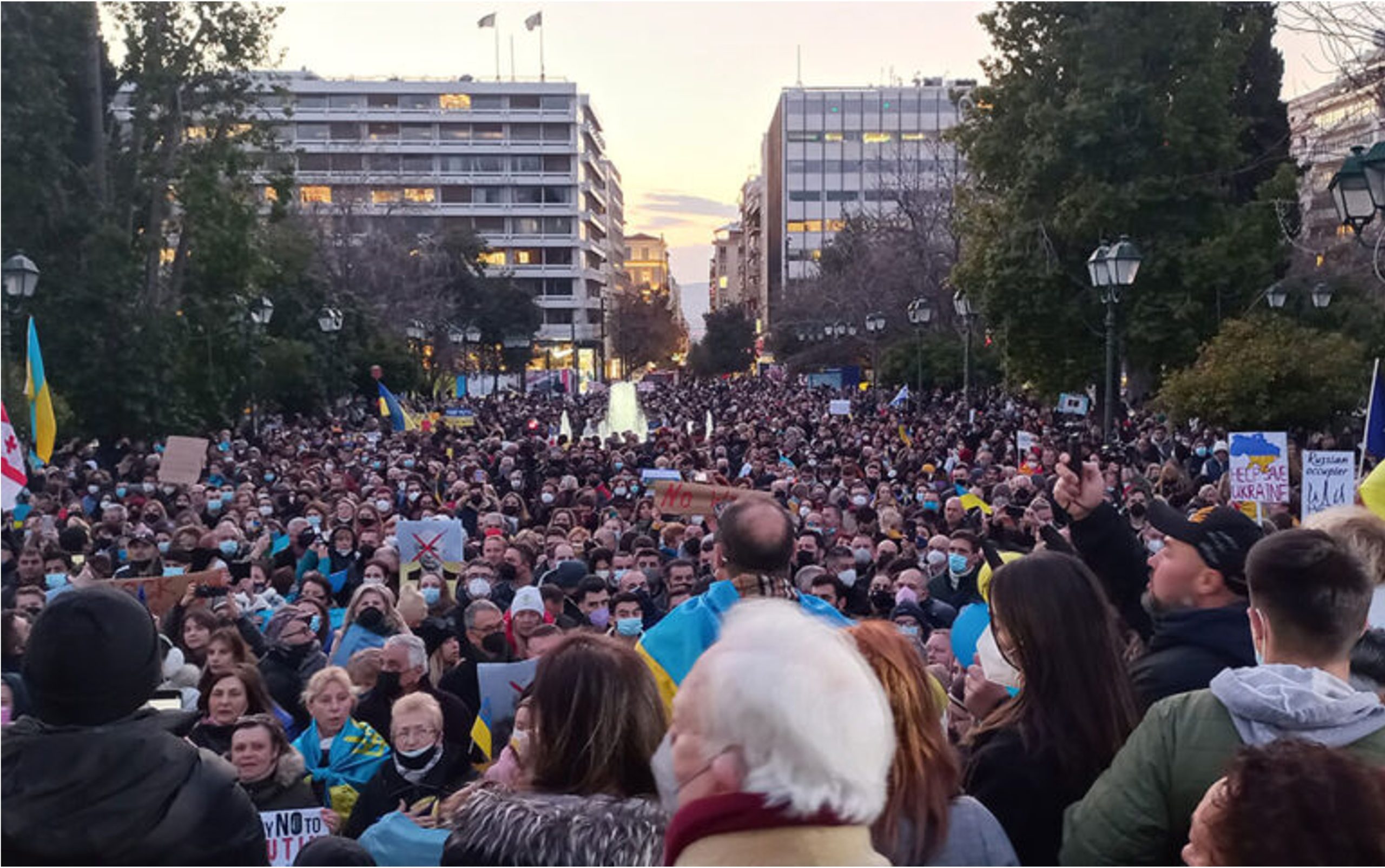 På tisdagskvällen samlades tusentals människor på Syntagmatorget i Aten för att demonstrera. ”Stoppa Putin, stoppa kriget, vi vill ha fred, skanderade demonstranterna. De tidigare så ryssvänliga grekerna har nu vänt Putin ryggen. Anfallet på Ukraina, ett ortodoxt land med en stor minoritet av etniska greker, fick grekerna att vända ryggen åt Ryssland.