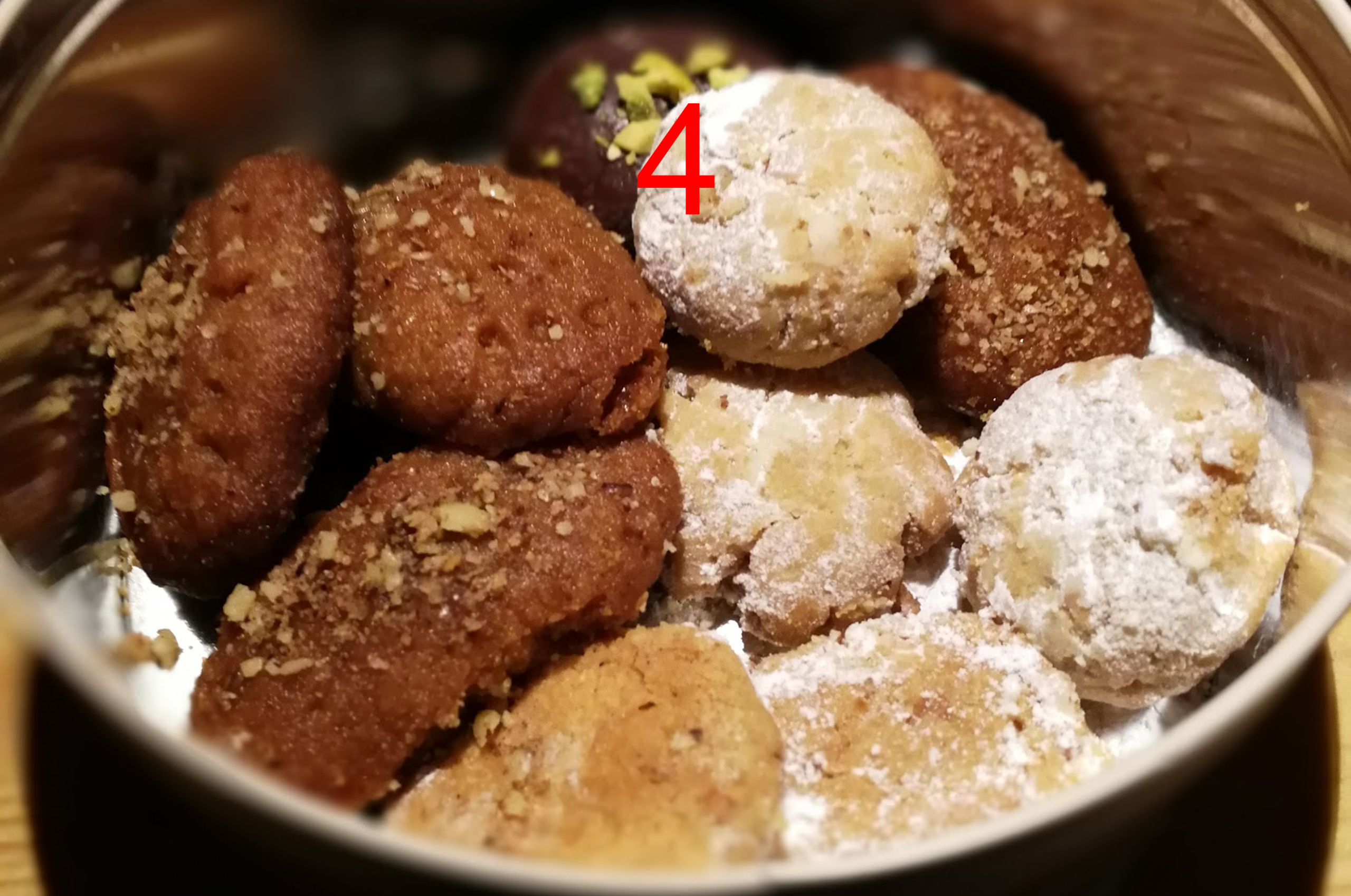 Melomakarona och kourabiedes är obligatoriska inslag i det grekiska julfirandet, lika självklara som våra pepparkakor. Helst ska man baka dem själv, men de säljs i varenda mataffär och på vartenda bageri hela december. Vi brukar få ett fat av grannarna, som vi kvittar mot hembakade eller medtagna pepparkakor.