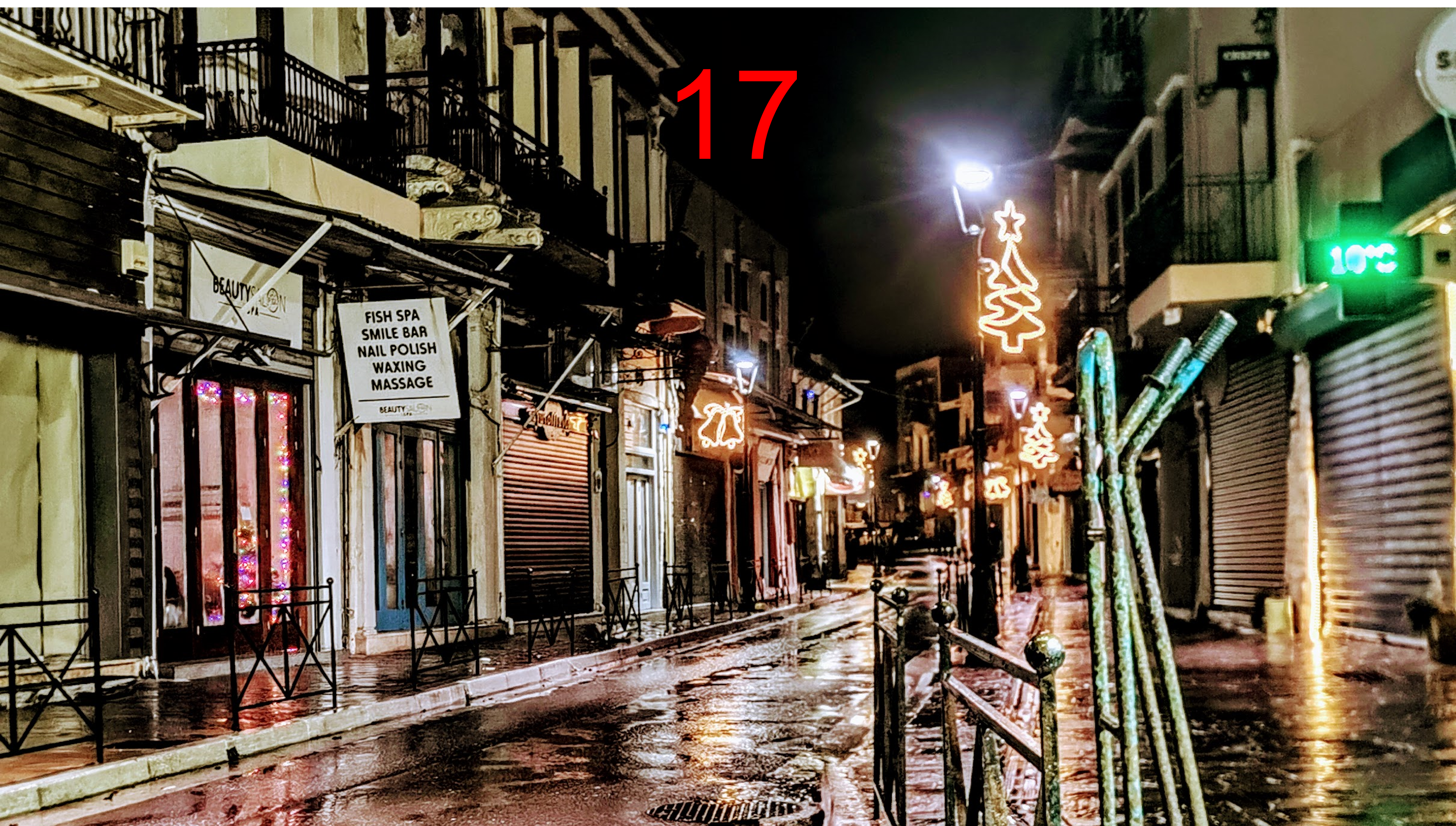 Även om det är tyst i gränderna så är det inte dött i stan. Det finns många restauranger, caféer och barer som har öppet och i centrum är det full fart på julhandeln. Voltan pågår som vanligt varje kväll, utom på juldagen. Många chanioter har, frivilligt eller ofrivilligt, ledigt till slutet på mars och passar på att umgås.