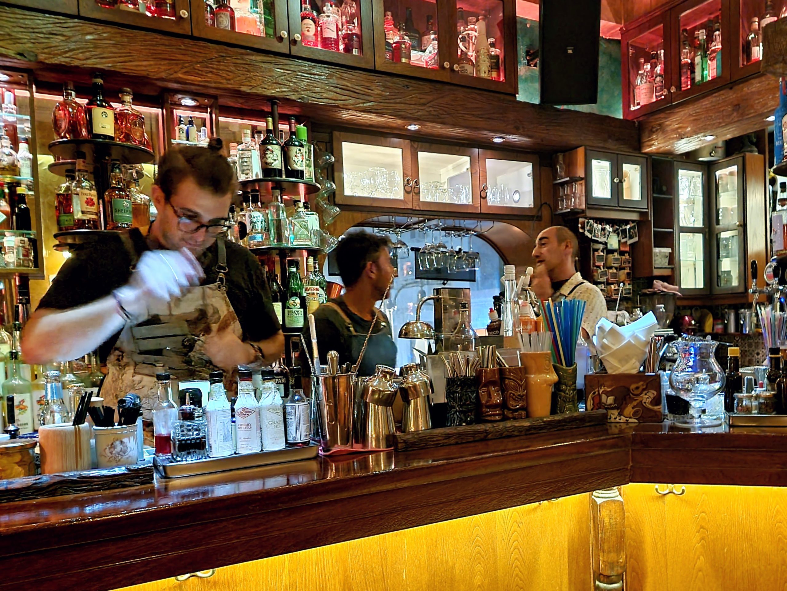 På den kretensisk/mexikanska restaurangen Matzenta kuzina del Sol finns en bar där man också kan äta. Här är musiken mexikansk eller sydamerikansk. Vi går mest hit för maten och drinkarna men musiken är också bra.