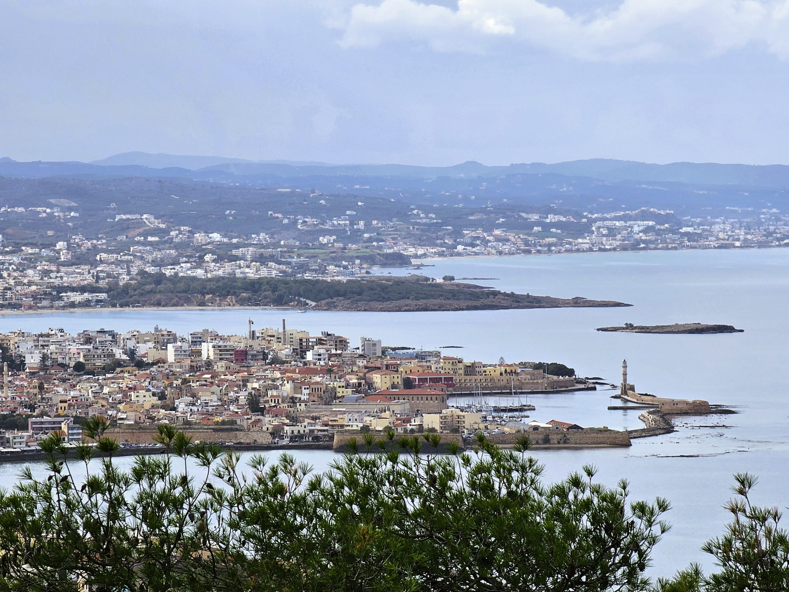 Till slut kommer vi till avtagsvägen mot Venizelous gravplats. Vägen planar ut, trafiken glesnar och vi är snart framme på Carte Postale, där vi njuter av utsikten över Chania och läskar oss med varsin hantverksöl innan vi vänder tillbaka hemåt.