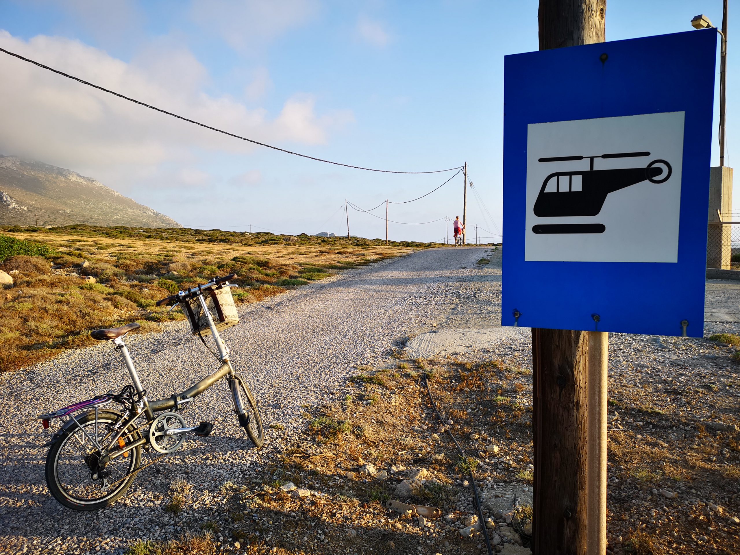 En halvtimme med buss från Chania till hamnen i Kissamos. Två timmars väntan i hamnen. Två timmars båtresa. Sedan rullar vi av våra cyklar på Antikythera, Greklands stillsammaste ö.